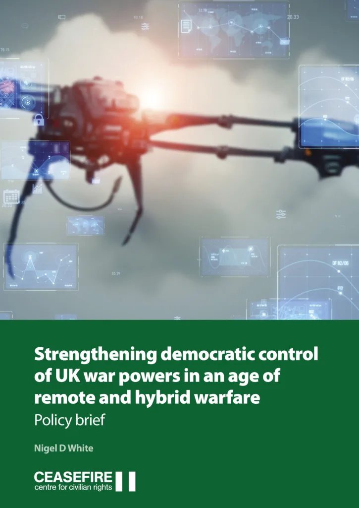 Strengthening democratic control of UK war powers in an age of remote and hybrid warfare, by Nigel D White, is published by Ceasefire Centre for Civilian Rights on 24th April 2024.